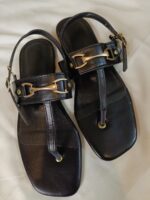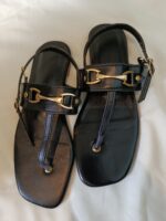 Step out in effortless style with these elegant black strap sandals, designed to offer both comfort and sophistication. Featuring a sleek toe-loop design with a decorative front strap and a secure ankle buckle, these sandals provide a perfect blend of fashion and functionality. The neutral beige color makes them a versatile choice that pairs beautifully with casual outfits, summer dresses, or semi-formal wear.