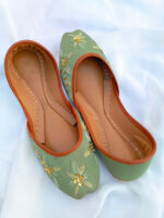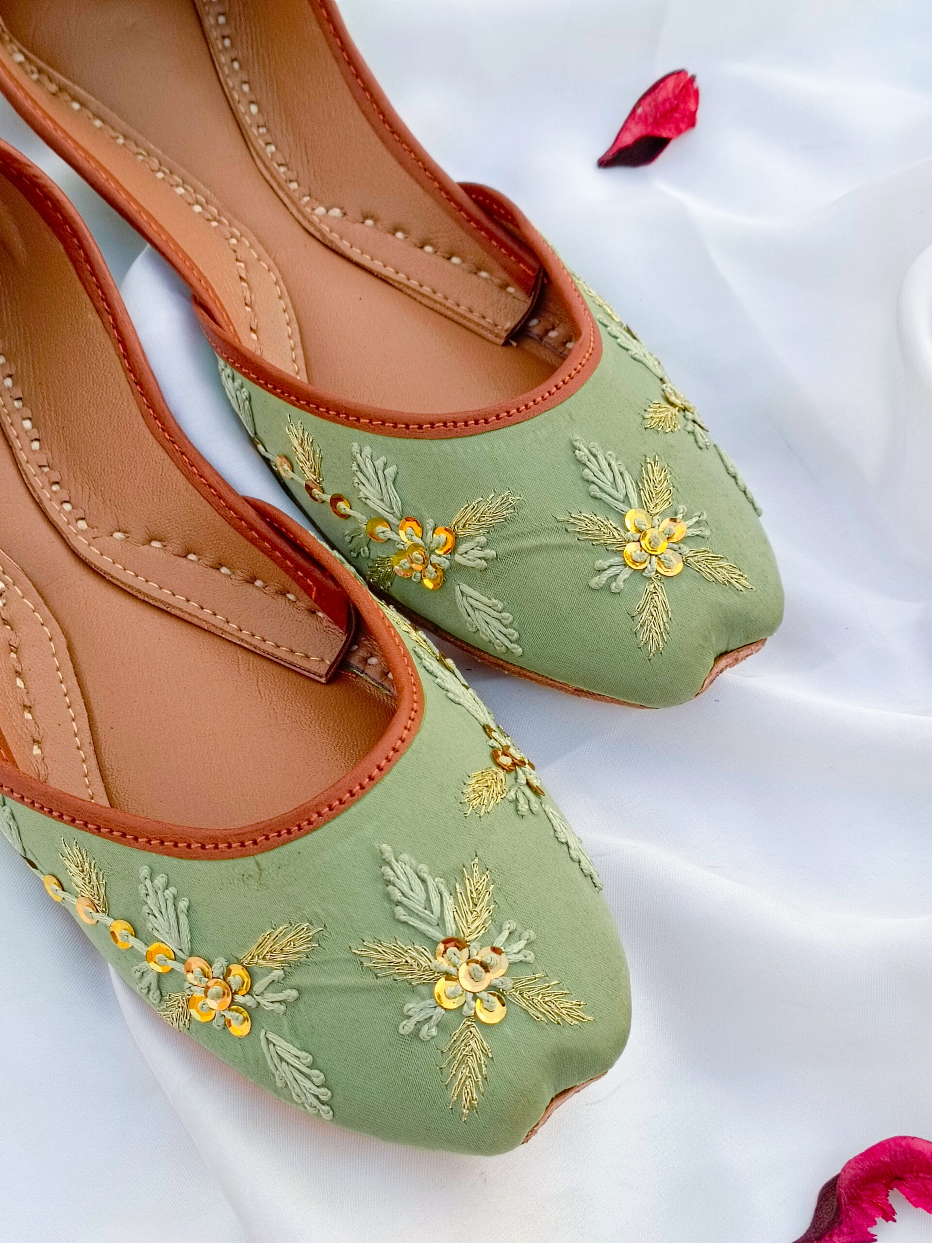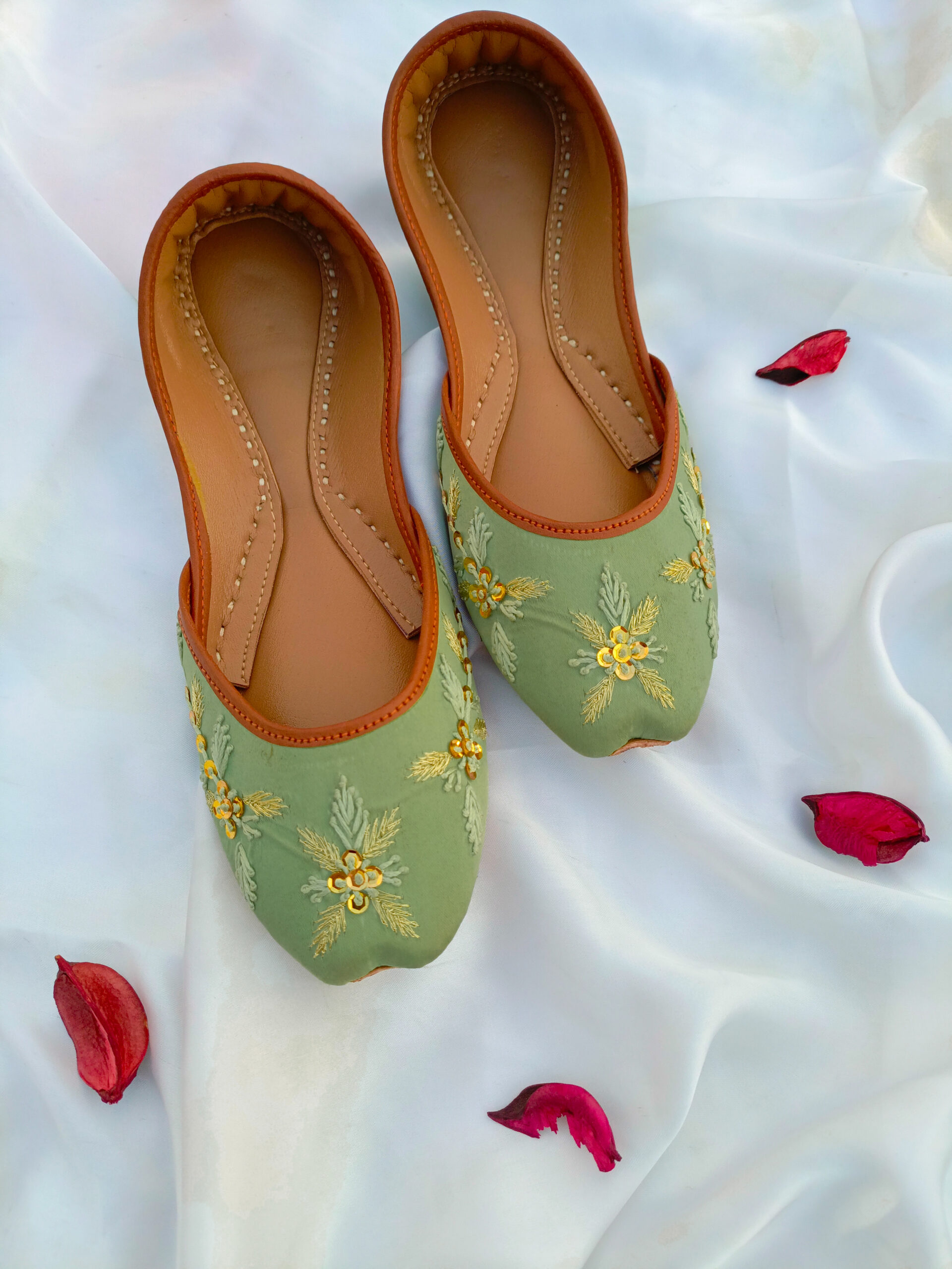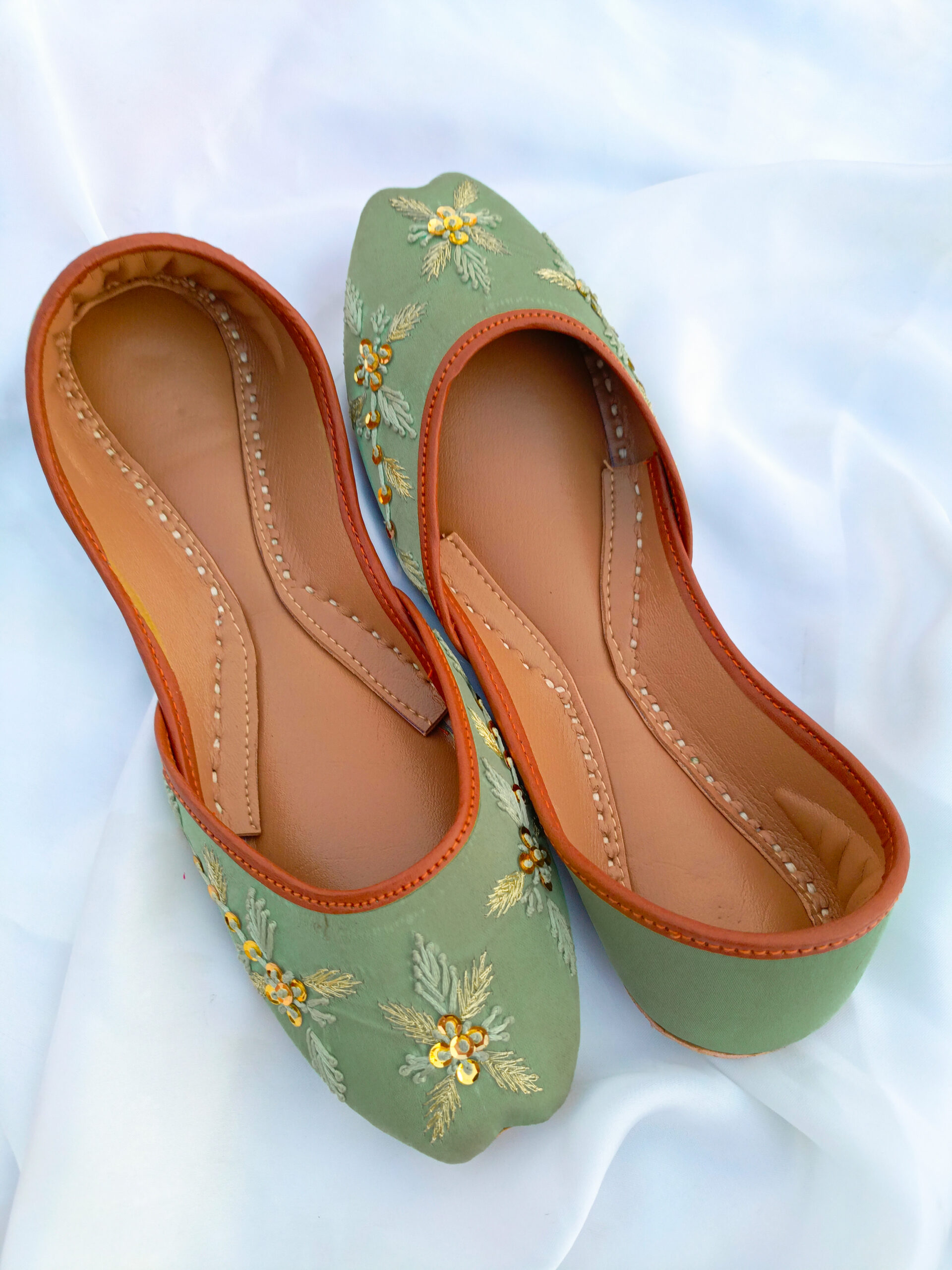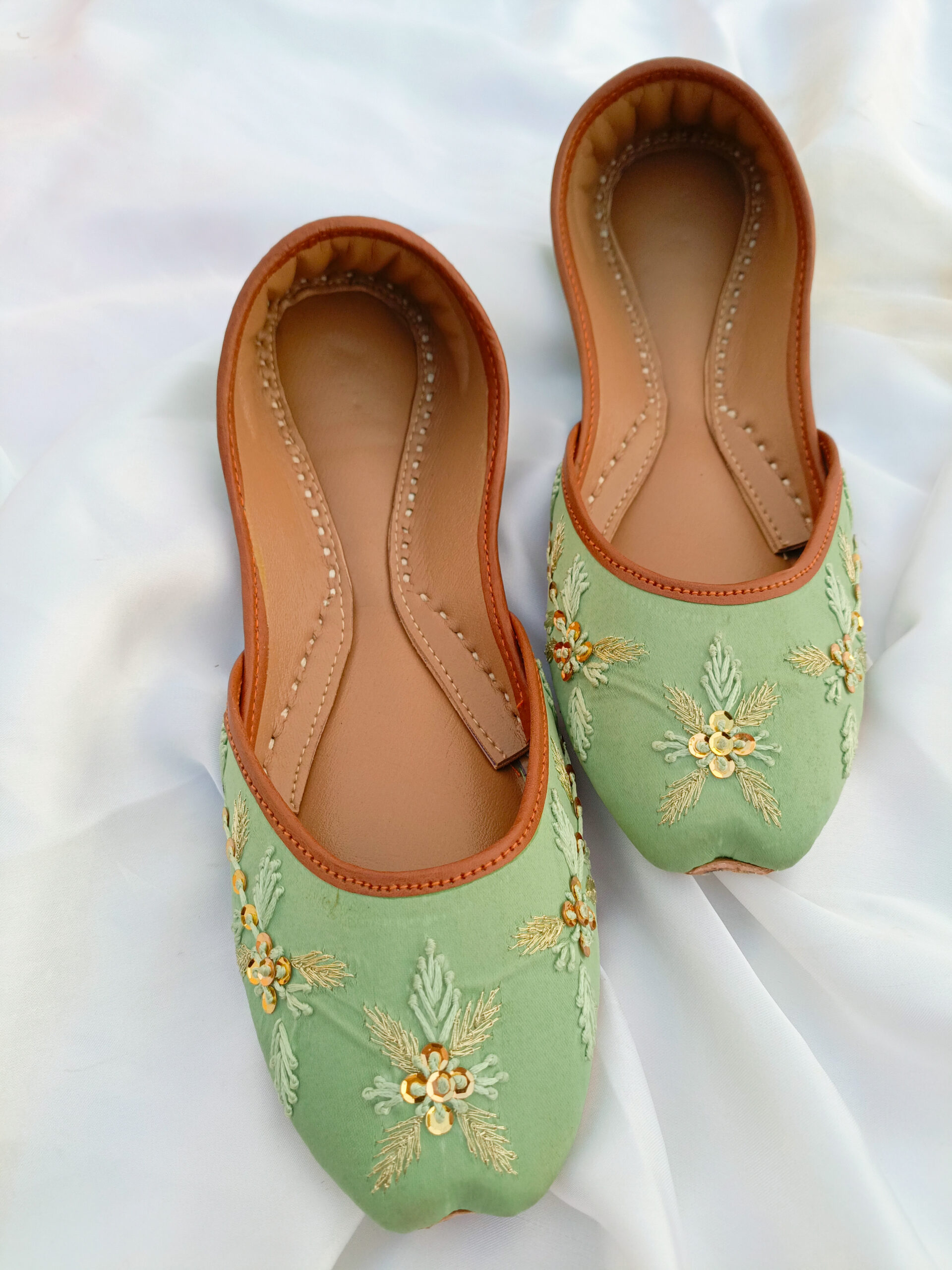 Mint Green Khussa – Sequin Flat Shoes for Women
