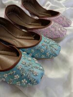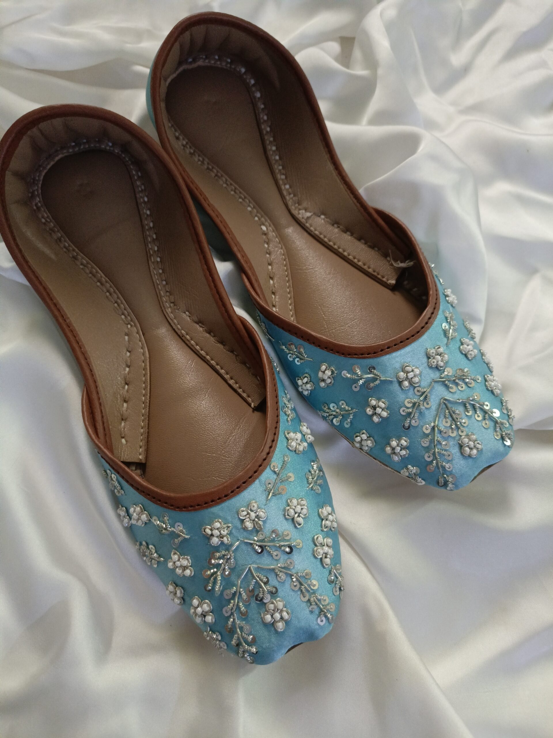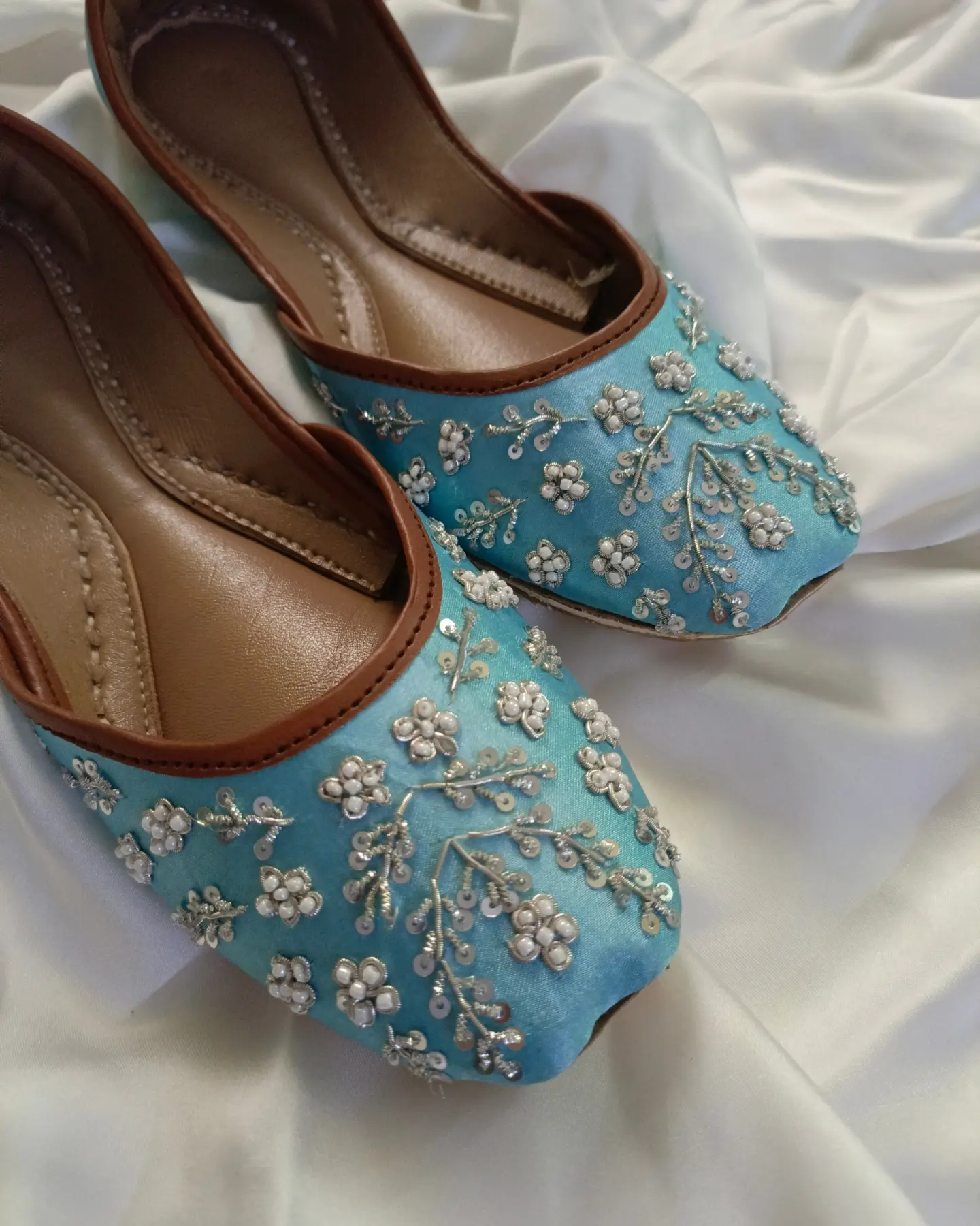 Hand Embroidered Ice Blue Khussa – Perfect choice for Summer .