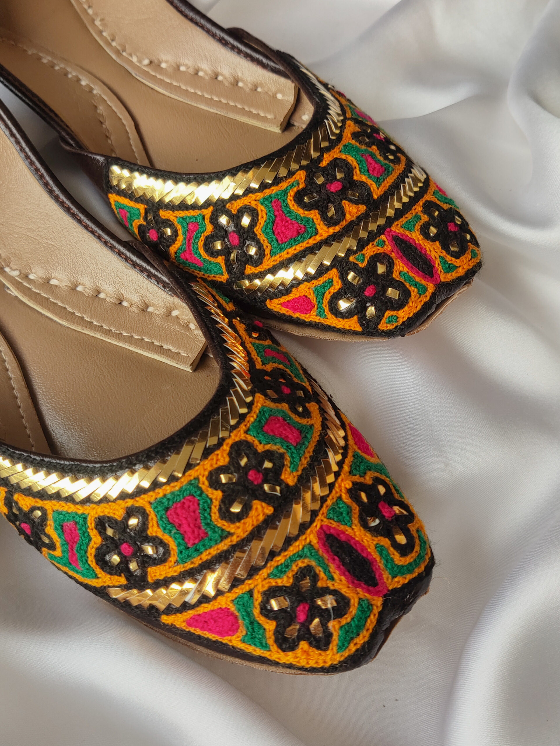 Hand Embroidered Mustard Traditional Khussa – Perfect choice for Mehndi event