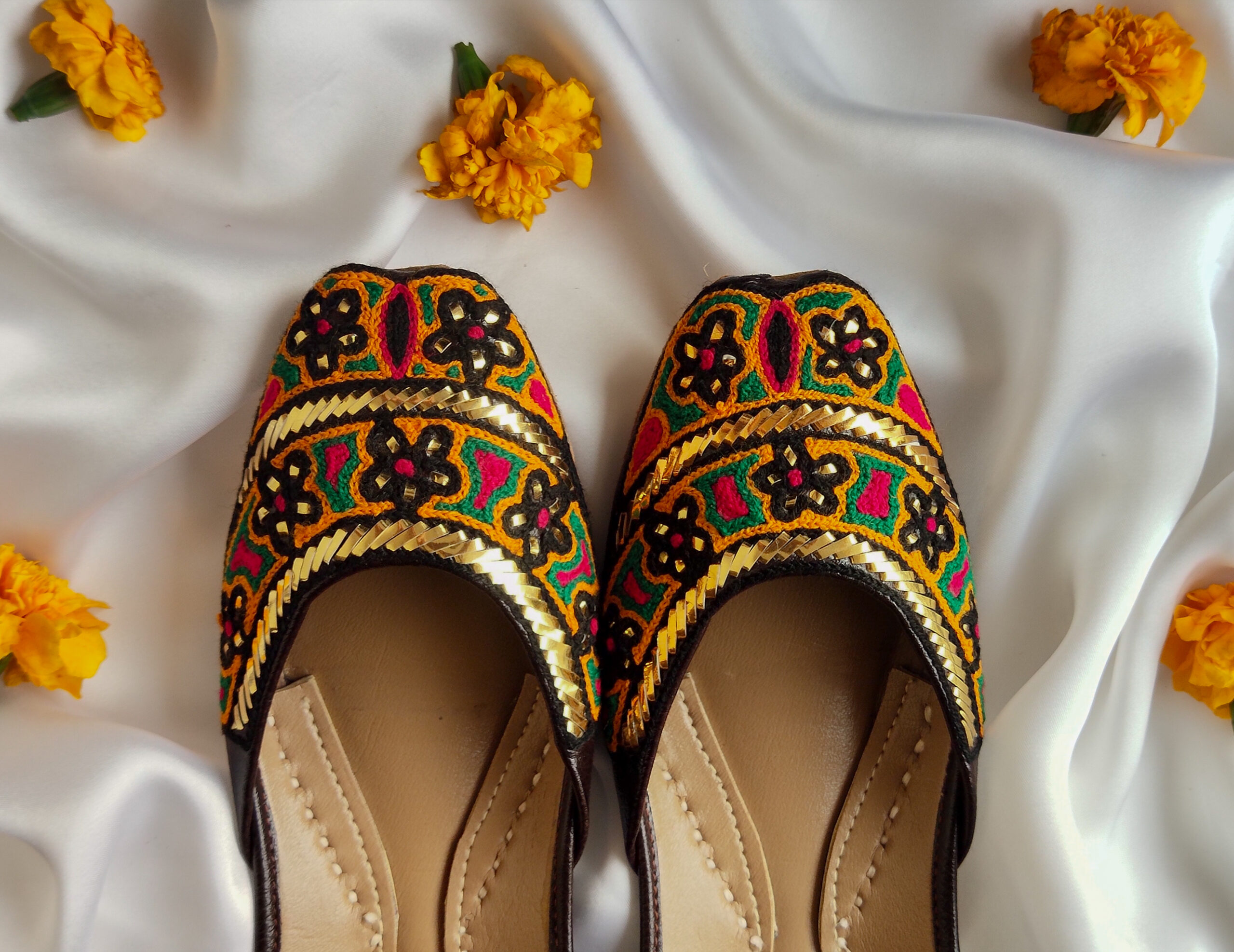 Hand Embroidered Mustards Traditional Khussa – Perfect choice for Mehndi event