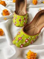 Neonic Green Mirror Khussa – Handmade Ethnic Flats