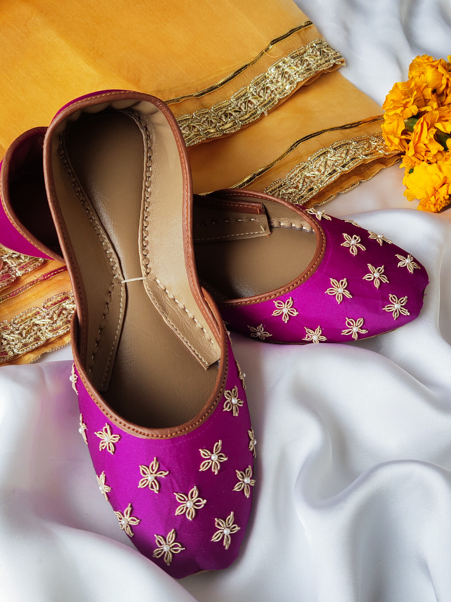 Mustard Motive Khussa – Handmade Flats for Women